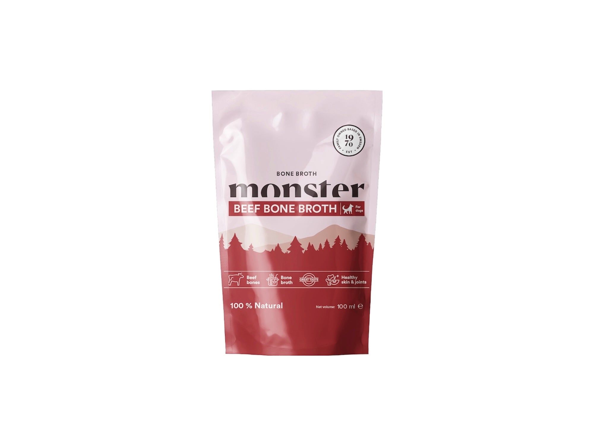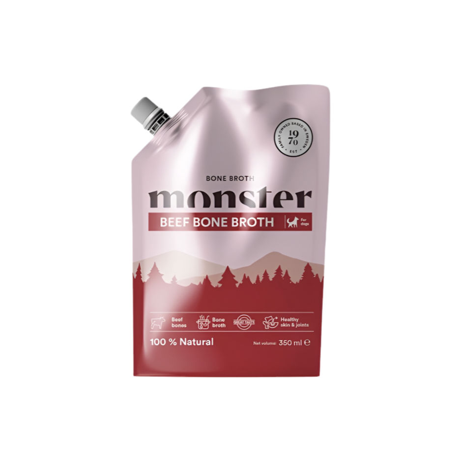 Ge din hund en smakupplevelse som både är god och gör gott! Monster Bone Broth med nöt är rik på kollagen, hyaluronsyra och glukosamin – ämnen som bidrar till rörliga leder, frisk hud och en glänsande päls.
