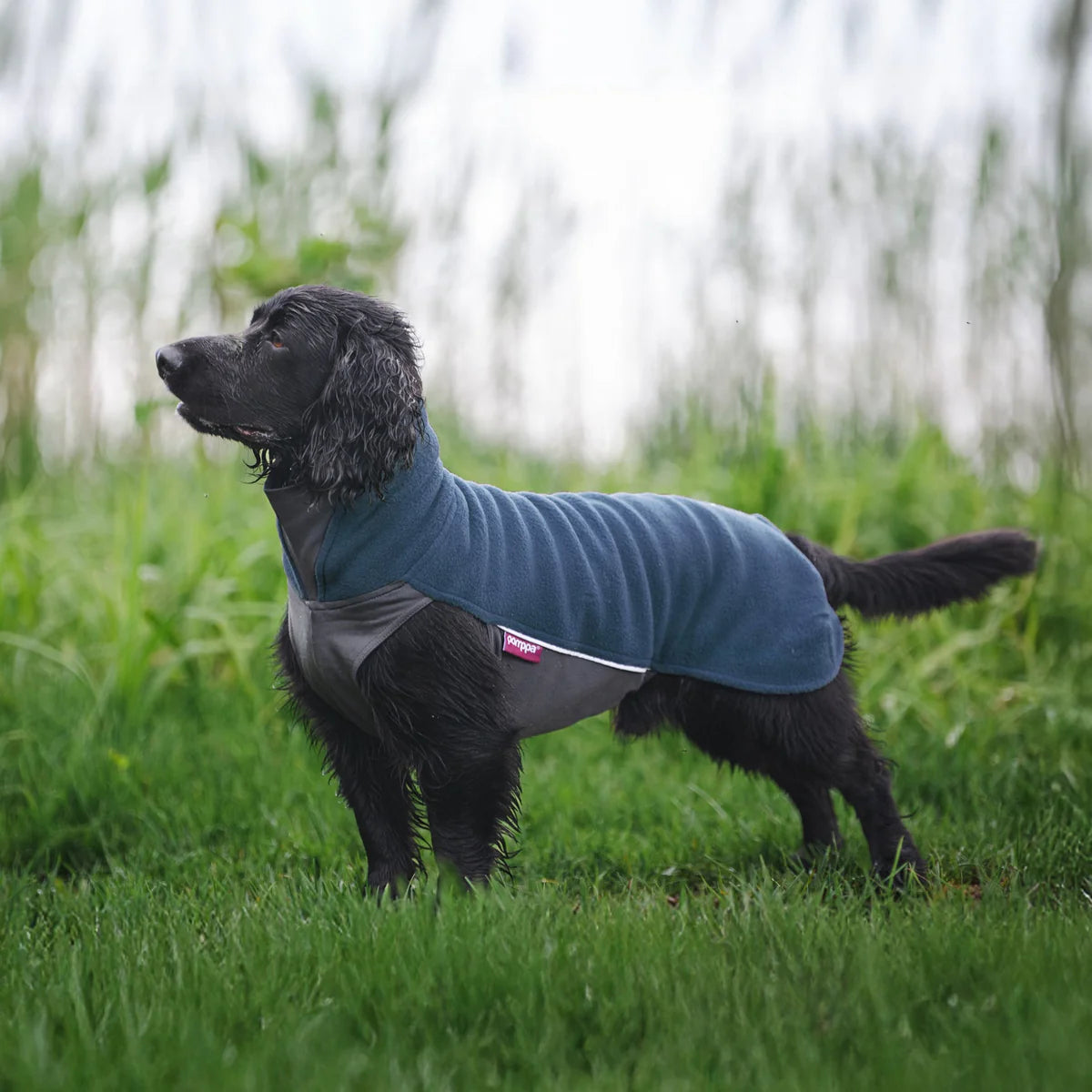 JumppaPomppa är en mycket elastisk och mångsidigt Fleecetäcke. Kombinationen av mjuk fleece och vattenavvisande termisk trikå lämpar sig för användning året runt. Tack vare smidigheten och den värmande funktionen är den väldigt popular och används mycket inom träning och hundsport.