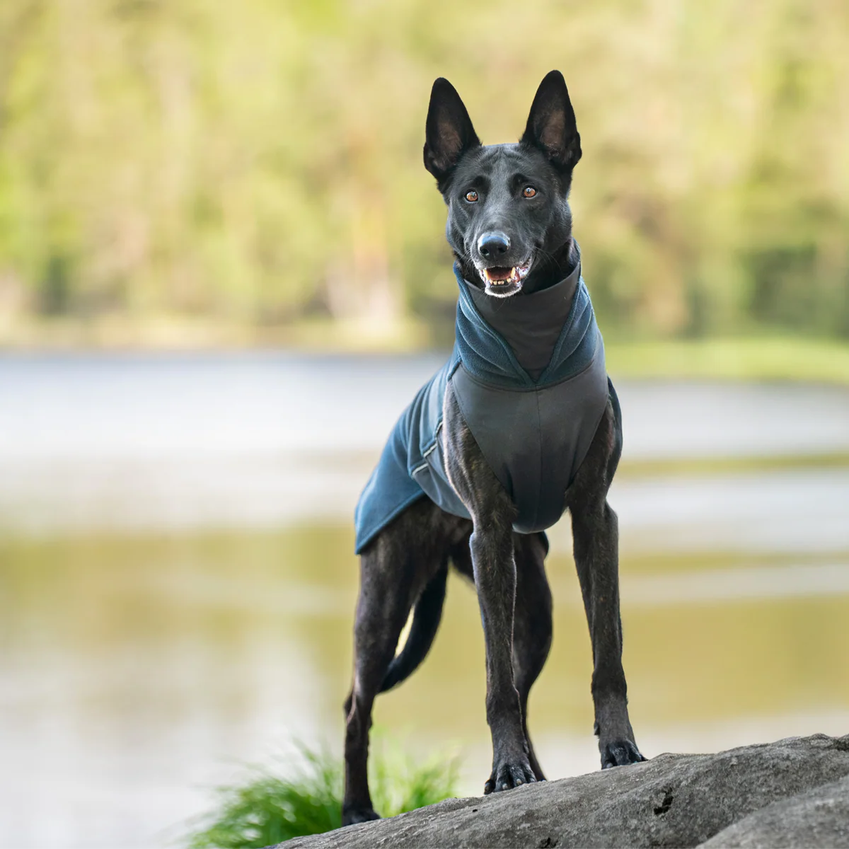 Ovandelen är tillverkad av antistatisk och högelastisk fleece, vilket gör att tröjan är lätt att ta av och på. Undersidan är tillverkad i vattenavvisande termisk trikå som skyddar hundens mage och bröst.
