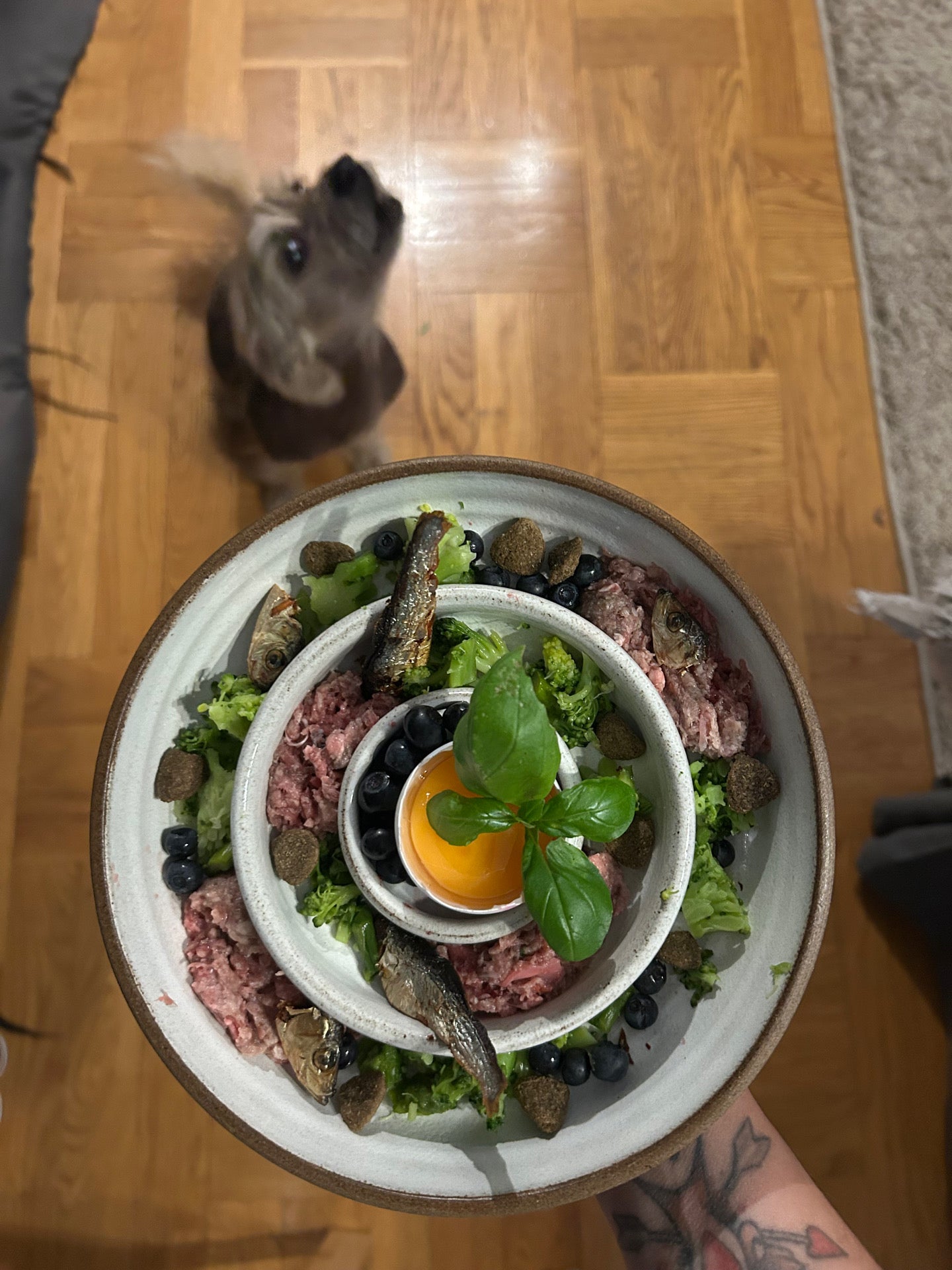En matskål som är lika mycket en inredningsdetalj som en praktisk lösning för din hunds måltider.