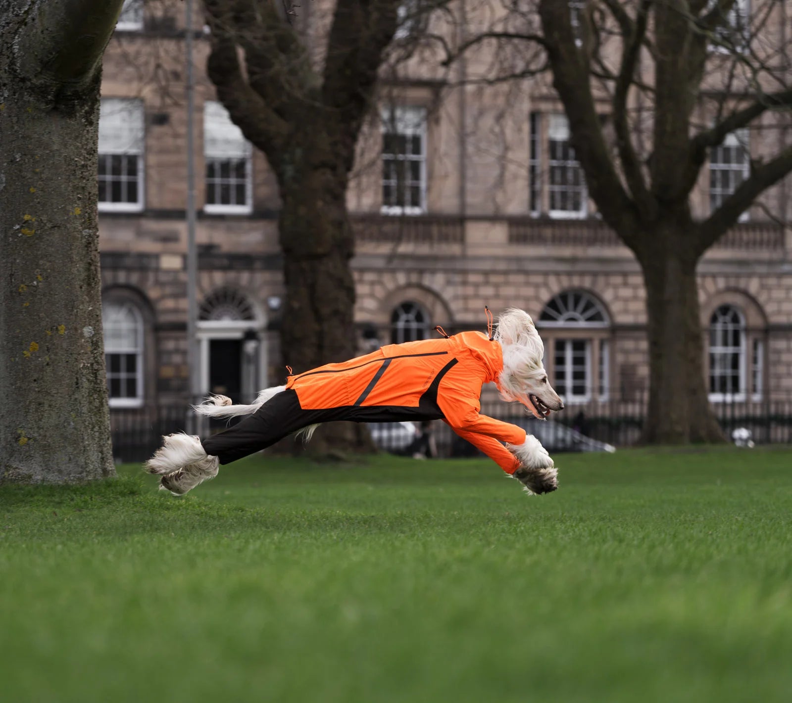 Med varumärkets Freemotion Tech™-design kombineras fyrvägsstretch och strategiskt placerade paneler för att hunden ska kunna röra sig fritt — utan att bli begränsad av kläder. Six justeringspunkter (armhålor, midja, hals, rygg, svans) möjliggör en skräddarsydd passform oavsett hundens form. Extra detaljer som helkedja på sidan, muddar som kan vikas upp och öppning för koppelfäste gör overallen praktisk både för vardagsbruk och aktivitet.