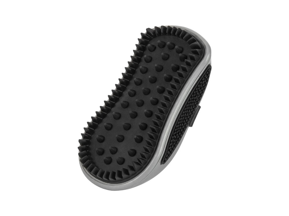 De mjuka gummitänderna är skonsamma mot huden och gör borstningen till en härlig upplevelse för hunden. Handtaget är utformat för bra grepp, vilket gör den enkel och bekväm att använda även vid längre borstpass.