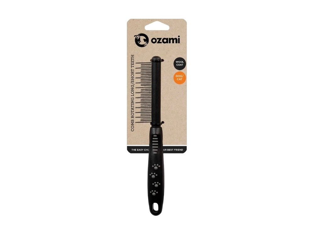 Ge din fyrbenta vän en skonsam och effektiv pälsvård med denna praktiska kam. Designad för att enkelt reda ut tovor och minska fällning, tack vare de roterande tänderna i olika längder. Perfekt för både hundar och katter med ullig päls. Handtaget ger ett bekvämt grepp för enkel användning. Ett måste för alla djurägare som vill hålla sina husdjur snygga och välvårdade.